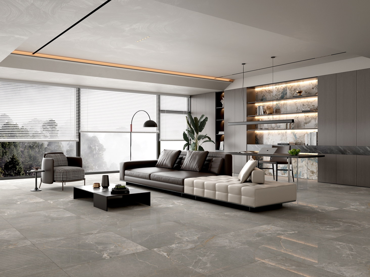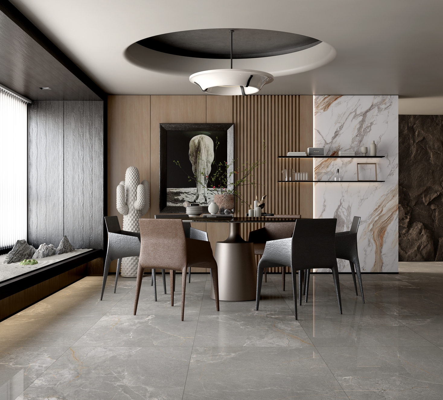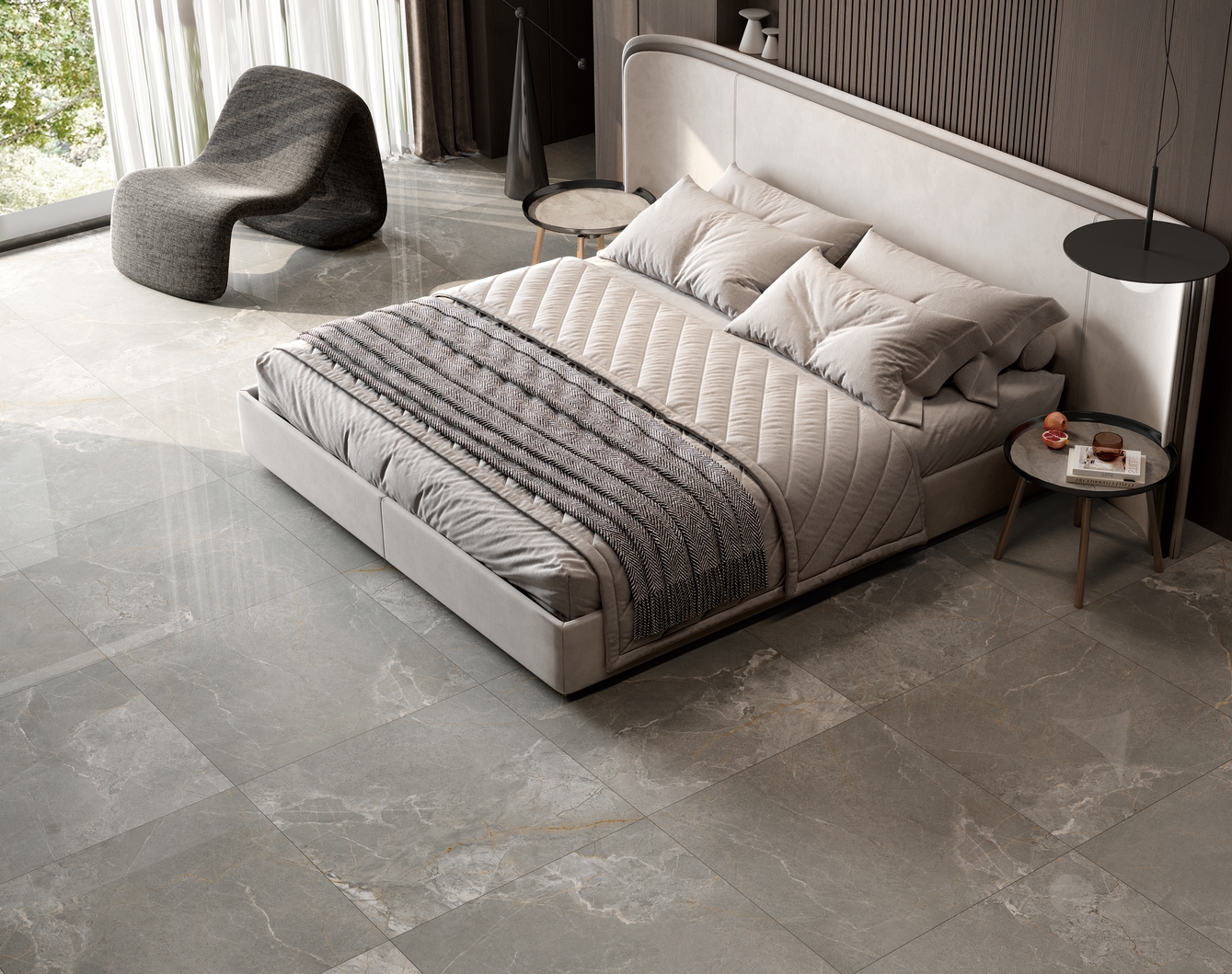 濃郁的灰色色澤,細(xì)膩的自然游動(dòng),輕松營(yíng)造出一股浪漫、寫意的空間氛圍。大空間鋪貼,整體感覺更連貫,更氣派。
