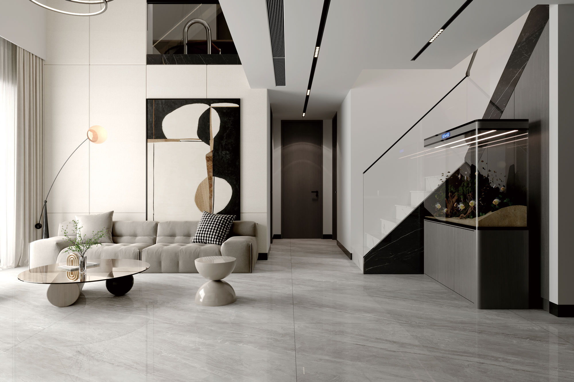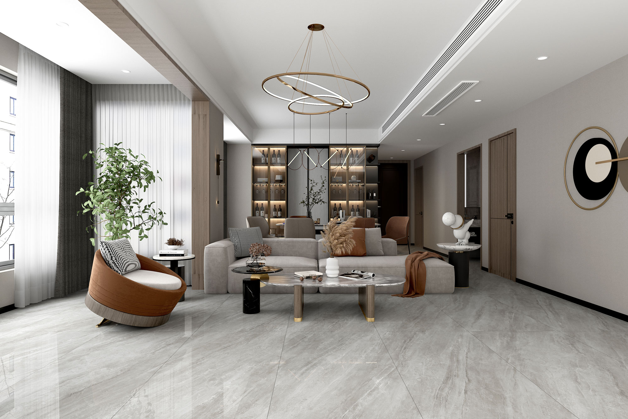 以茫茫天際般的灰白為磚底,出其不意間的鎏光紋理,彰顯個(gè)性不凡,打造磅礴大氣的空間美學(xué)。