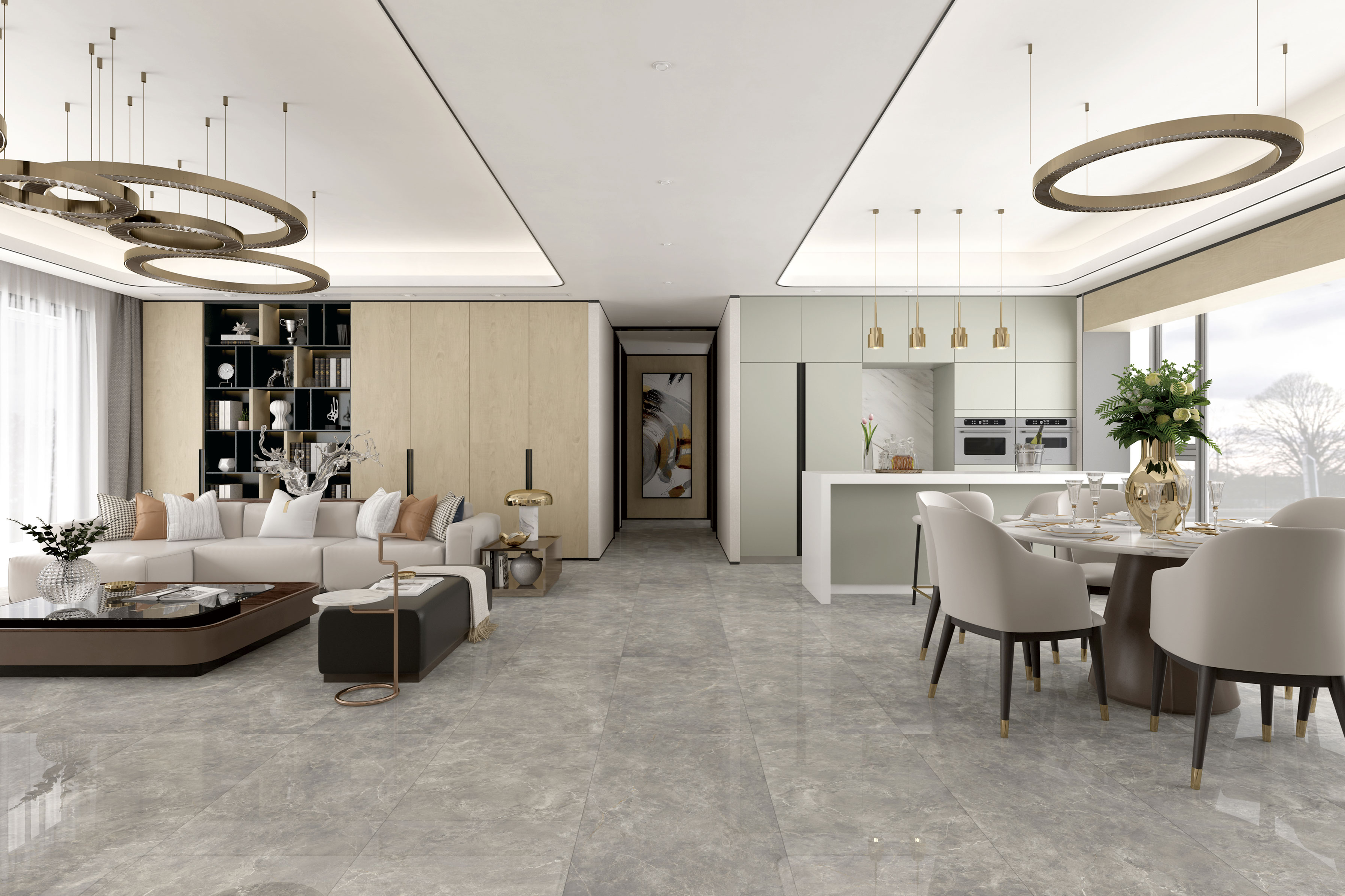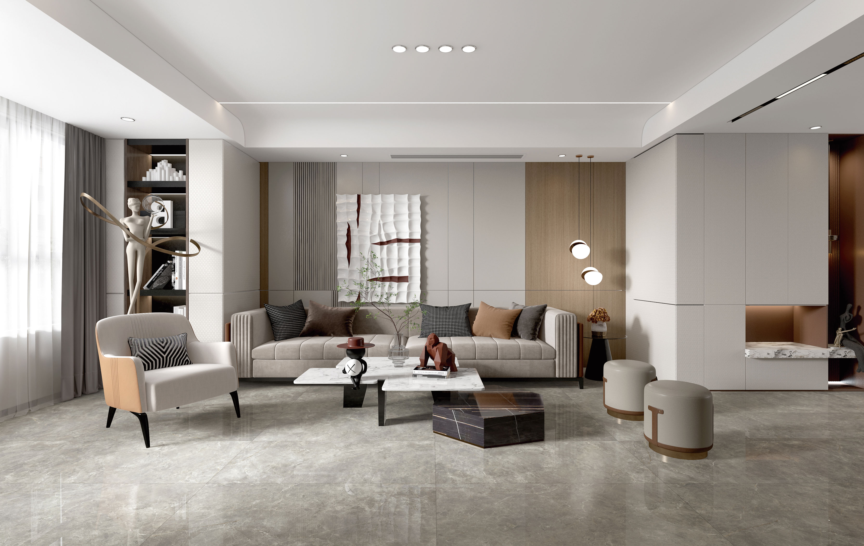 創(chuàng)意取自歷經(jīng)千年沉淀的“鹽巖”,層次豐富的中灰色調(diào),銀白線點(diǎn)綴不落俗套,在半透明的巖體中變幻多姿,展現(xiàn)時(shí)光變更之美,非常適合高端雅致的空間。