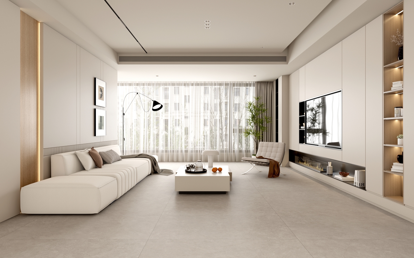 作為奢雅選色淺灰,質(zhì)樸的水泥細(xì)紋版面在淺灰調(diào)基底的映襯下,透露出清冷寧?kù)o的自然氣息,內(nèi)斂且低調(diào)??稍诩揖涌臻g中與其他色彩靈活搭配,賦予設(shè)計(jì)更大的自由度。